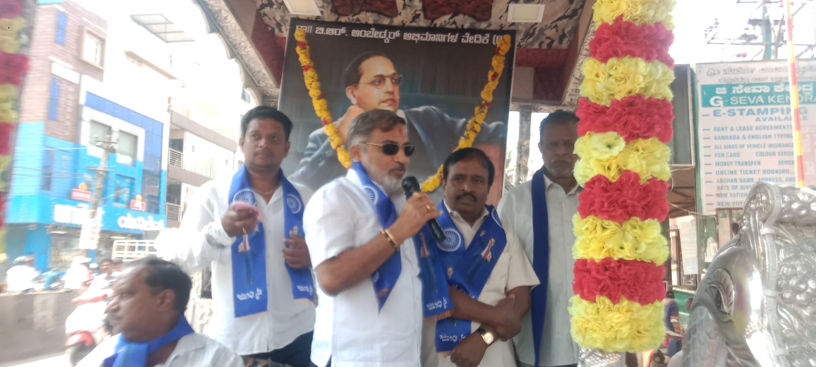 ಅವರು ದಾಸರಹಳ್ಳಿ ವಿಧಾನಸಭಾ ಕ್ಷೇತ್ರದ ಹೆಗ್ಗನಹಳ್ಳಿ ಮುಖ್ಯ ರಸ್ತೆ ಬಸ್ ನಿಲ್ದಾಣ ಹತ್ತಿರ ಡಾ ಬಿ ಆರ್ ಅಂಬೇಡ್ಕರ್ ಅಭಿಮಾನಿಗಳ ವೇದಿಕೆ ಸಂಸ್ಥಾಪಕ ರಾಜ್ಯಾಧ್ಯಕ್ಷ ಉಮೇಶ್ ಗೌಡ ರಾವಣ್ ಅವರ ನೇತೃತ್ವದಲ್ಲಿ ಆಯೋಜಿಸಿದ್ದ ಸಂವಿಧಾನ ಶಿಲ್ಪಿ ಬಾಬಾ ಸಾಹೇಬ್ ಅಂಬೇಡ್ಕರ್ ಅವರ 135ನೇ ಜನ್ಮದಿನಾಚರಣೆ ಅಂಗವಾಗಿ ಡಾ. ಬಿ ಆರ್ ಅಂಬೇಡ್ಕರ್ ಅವರ ಭಾವಚಿತ್ರಕ್ಕೆ ಮಾಲಾರ್ಪಣೆ ಮಾಡಿ ಗೌರವ ನಮನ ಸಲ್ಲಿಸಿ ಮೆರವಣಿಗೆಗೆ ತಯಾರಿಯಾಗಿ ನಿಂತಿರುವ ಬೆಳ್ಳಿ ರಥ ವಾಹನಕ್ಕೆ ಚಾಲನೆ ನೀಡಿ ಡಾ. ಬಿರಾದಾರ್ ನೆನದ್ದಿದ ಜನರನ್ನು ಉದ್ದೇಶಿಸಿ ಮಾತನಾಡಿದರು.