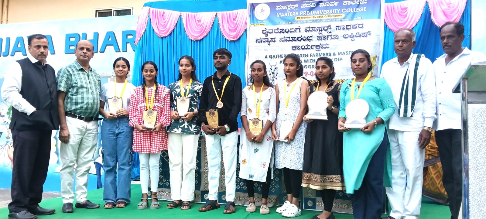 ಸಮಾರಂಭದಲ್ಲಿ ಶೇ. 95ಕ್ಕೂ ಹೆಚ್ಚು ಅಂಕ ಪಡೆದ ವಿದ್ಯಾರ್ಥಿಗಳಿಗೆ ಪದಕ, 10ಸಾವಿರ ನಗದು ಮತ್ತು ಸನ್ಮಾನ ಮಾಡಲಾಯಿತು. ಎನ್.ಜಿ. ಗಂಗಣ್ಣ, ಪಾಪಣ್ಣ, ಪ್ರಾಧ್ಯಾಪಕರು ಮುಂತಾದವರಿದ್ದರು.